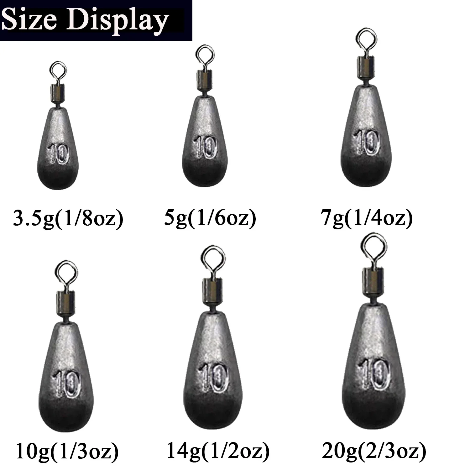 10pcs/lot Fishing Weight Sinker 3.5g 5g 7g 10g 14g 20g Water Drop Weights Fishing Tackle Accessories