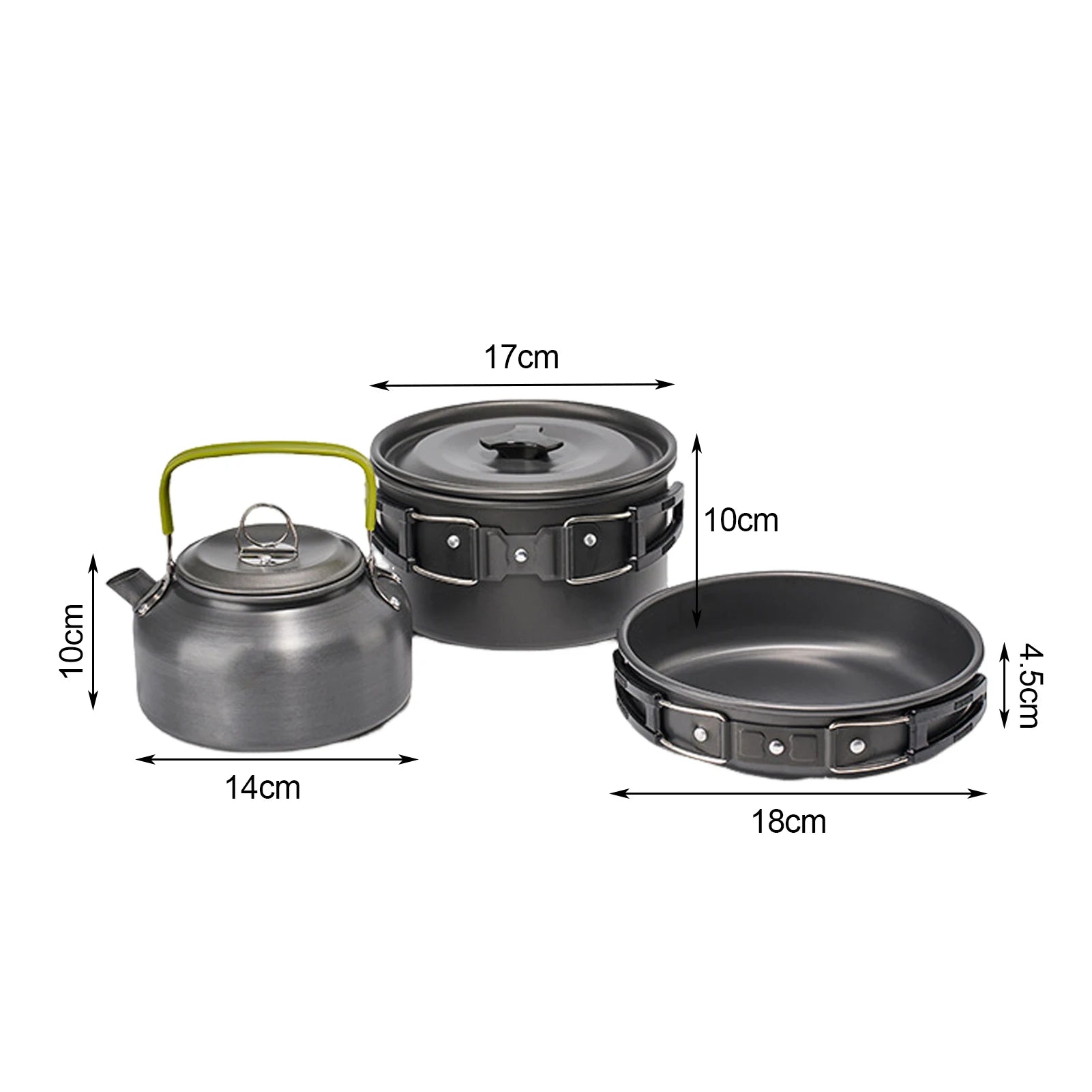 Durable & Wear-Resistant: Designed for durability, this cookware set boasts wear-resistant properties due to its premium aluminum construction. The sturdy materials ensure longevity and reliability in various outdoor environments, making it a dependable companion for both indoor and outdoor culinary adventures.