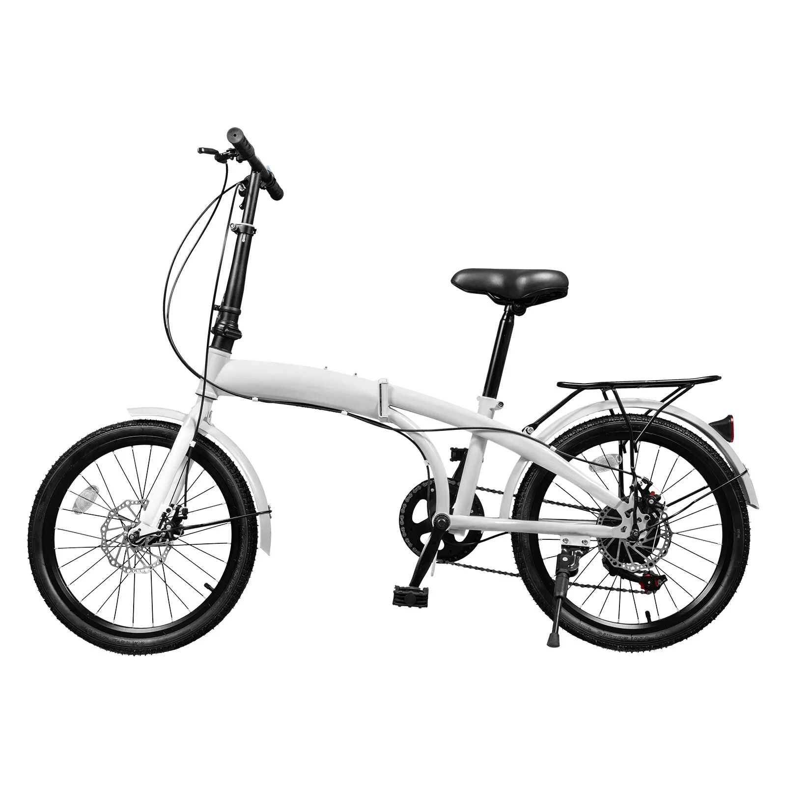 If you are a cycling enthusiast or want to improve your biking skills, then this 20-inch folding bike is an ideal choice for you whether it's for daily commuting or travel. Front and rear disc brakes provide stable speed control and improve safety. The 7-gear transmission is convenient for you to fight against different road conditions. What are you waiting for? Let it take you to enjoy the fun and freedom of biking.