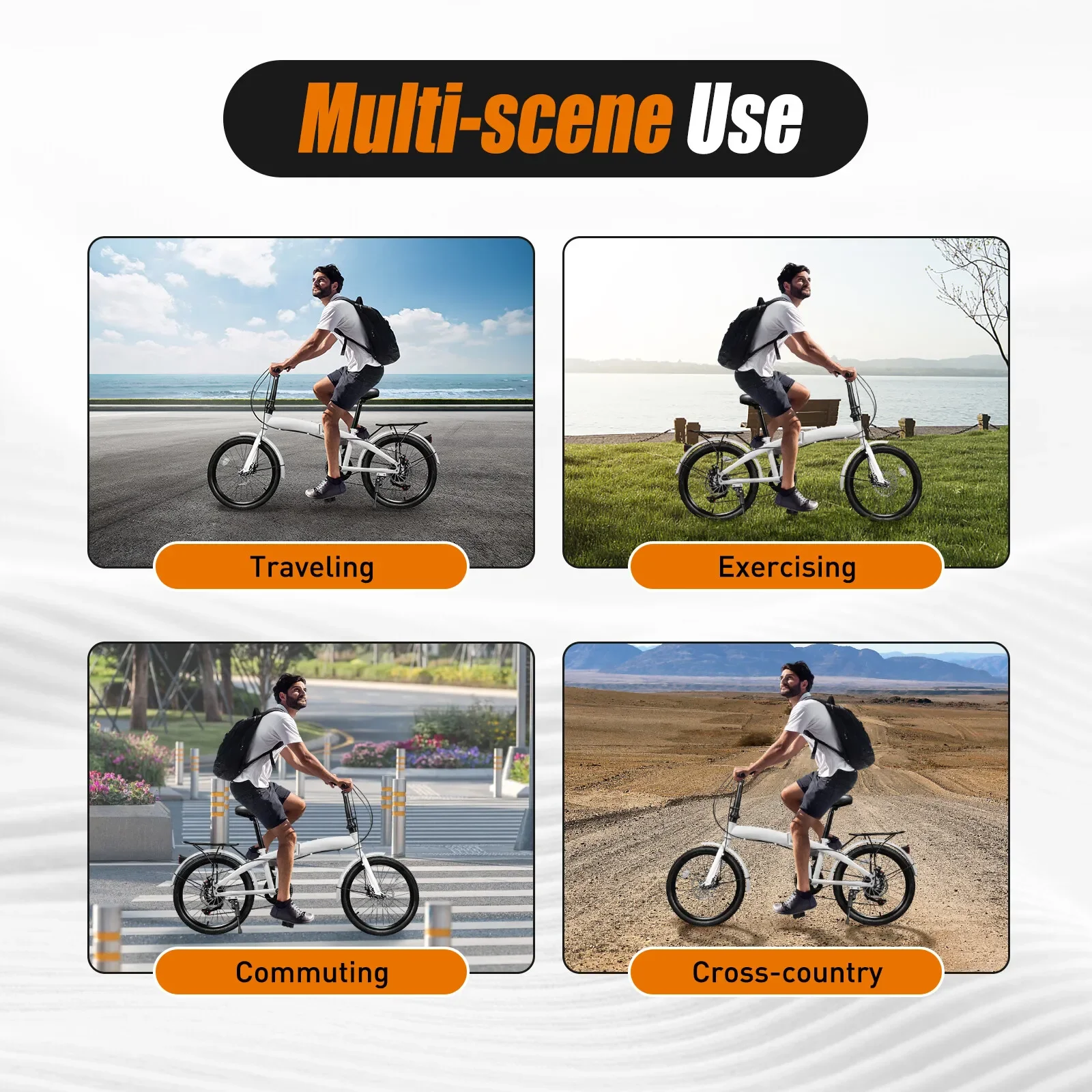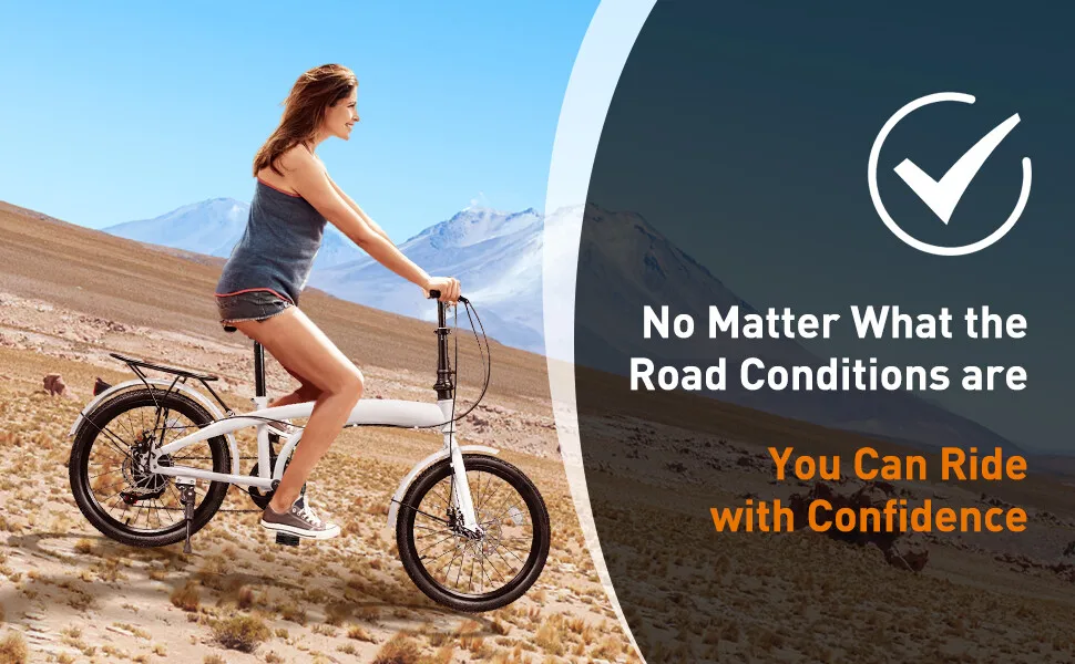20-inch Tires: The anti-slip texture of the 20-inch tire easily provides extra grip and stability on the road or trails, allowing you to ride with more confidence.