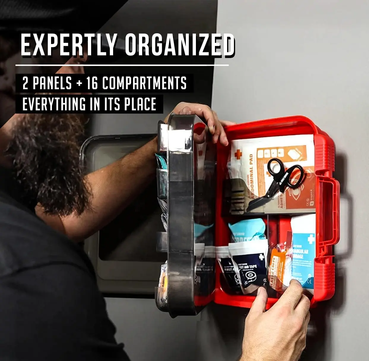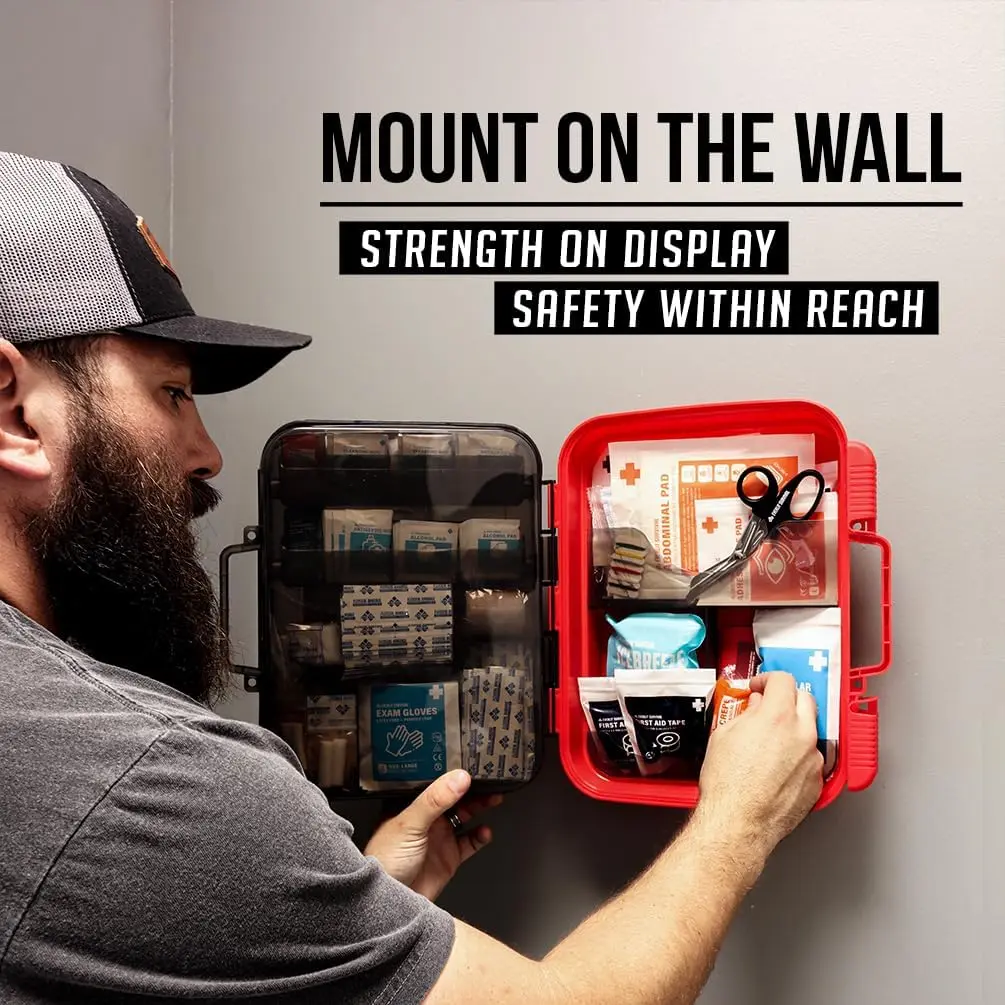 This comprehensive first aid kit provides essential medical supplies to handle a wide range of emergencies, ensuring safety and preparedness in various settings. ✅ Comprehensive Coverage: Addresses common injuries including cuts, scrapes, sprains, and burns. Includes multi-purpose ointment, medication tablets, and burn cream for effective treatment. ✅ Versatile Application: Suitable for multiple environments such as workplaces, offices, warehouses, schools, homes, vehicles, restaurants, and disaster preparedness. Ideal for contractors, businesses, EMTs, and general emergency kits. ✅ Organized Design: Features an intuitive multi-compartment interior for quick access during emergencies. The durable hard case is mountable for convenient placement in offices, workstations, classrooms, kitchens. Case dimensions: 13" x 11.5" x 3.5", weight: 4.25 lbs. ✅ Compliance & Capacity: Contains 400 pieces of essential medical supplies that fully comply with and exceed ANSI Z308.1-2009 standards. Designed to meet OSHA requirements for workplaces with up to 100 people. ✅ Quality Assurance: Assembled in the USA with attention to detail and reliability. This kit offers peace of mind through its thorough preparation for potential emergencies. Stay prepared with this professional-grade first aid kit that combines extensive coverage with practical organization.