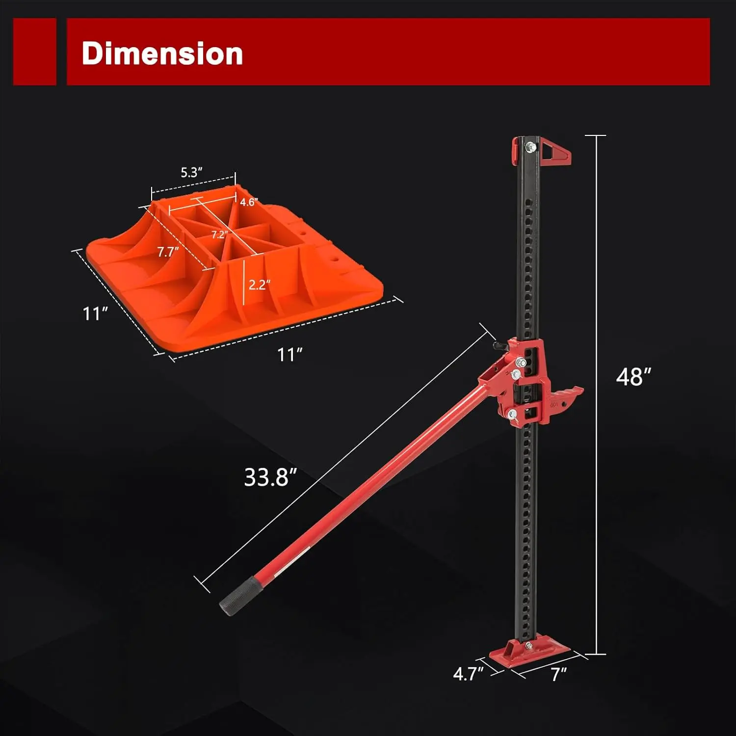 48" Heavy Duty High Lift Farm Jack with Base Plate, 3 Ton Capacity for Offroad Recovery on Trucks & SUVs
