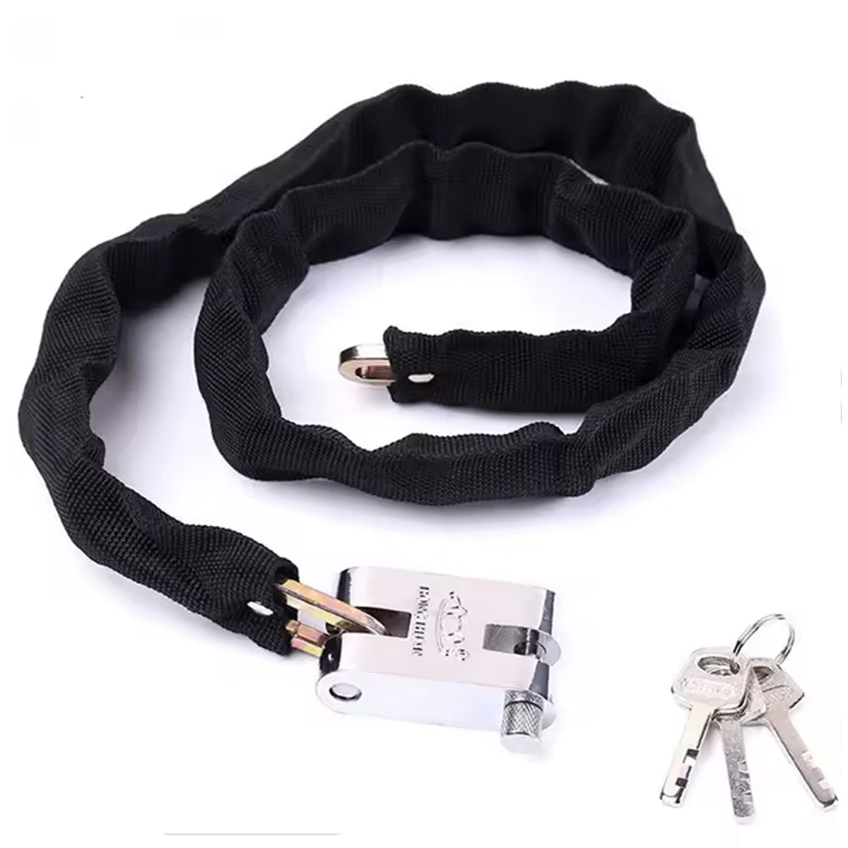 【Anti-saw and anti-cut】The chain lock body is made of durable steel and covered with black Oxford cloth. It is 6 mm thick and weighs 0.6 kg, which can effectively resist attacks from saw blades and other tools.