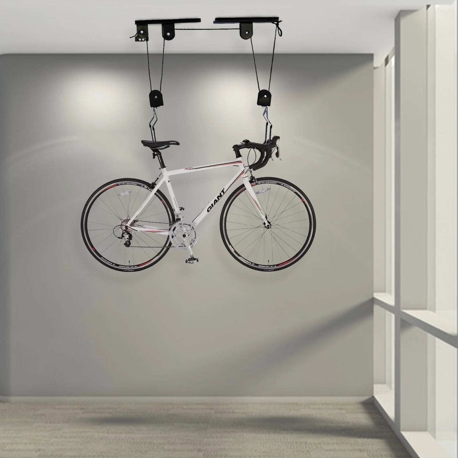 Bike Hoist for Garage Ceiling Mount Pulley System Bike Storage Set Of Bike Hangers for Garage Storage