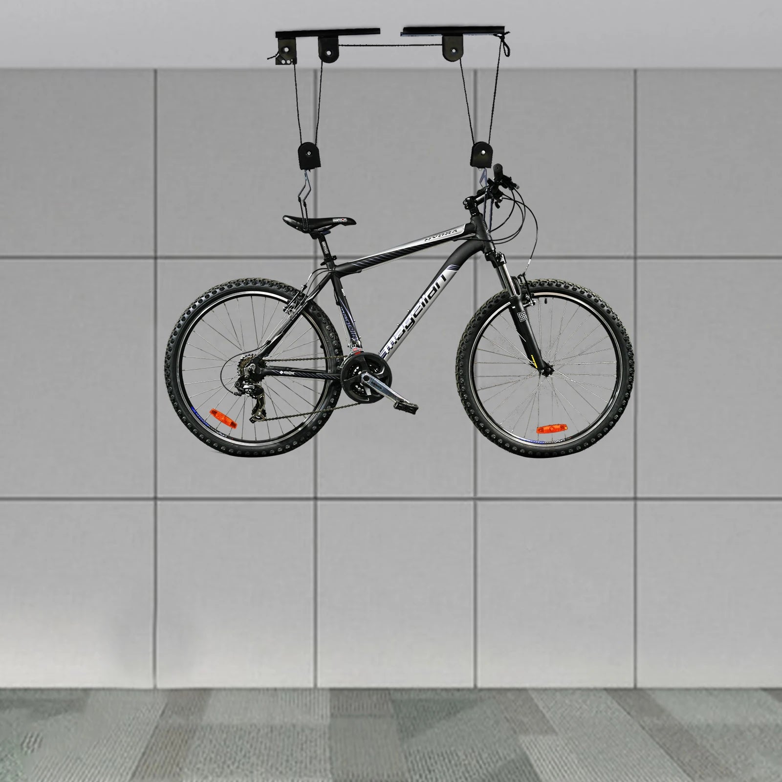 If there is not enough space for bicycles, our bicycles can be hung on the ceiling with our bicycle hoist, saving you a lot of space. This bike hoist for garage ceiling storage is the perfect way to store a bike overhead. Smooth pulleys lift even heavy bikes super easy. If you have a very heavy and large bike, this bike hoist is a great option.