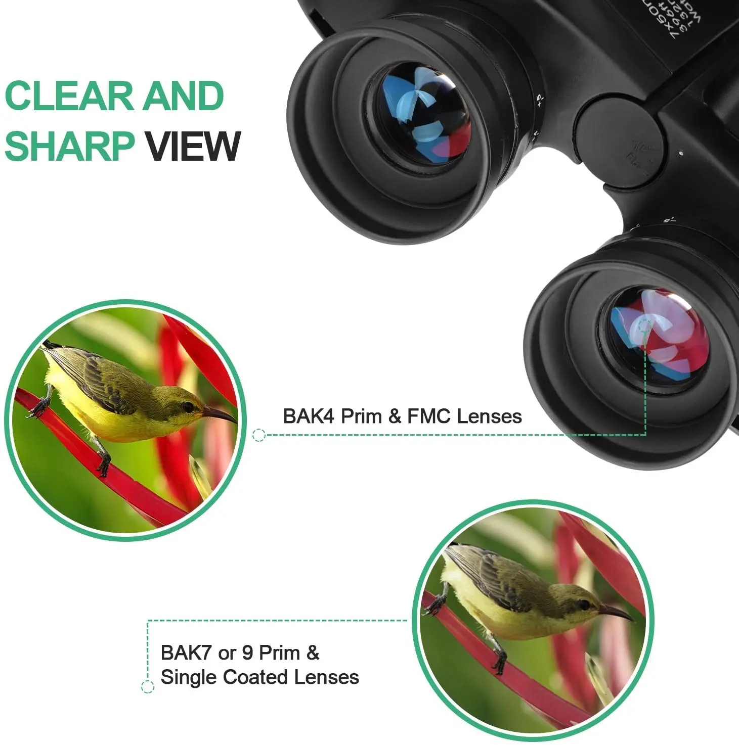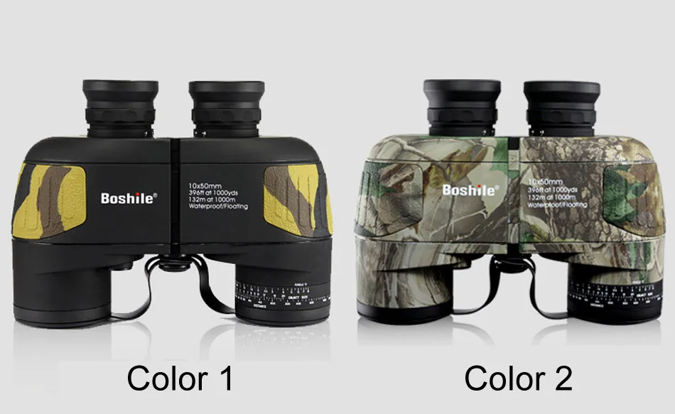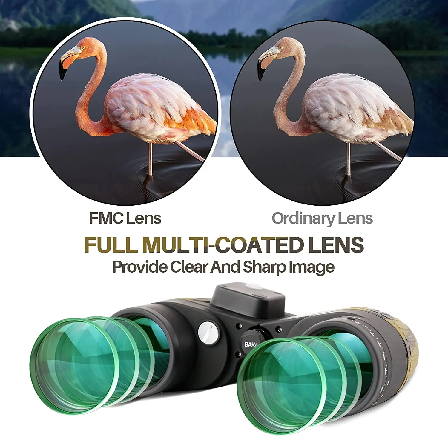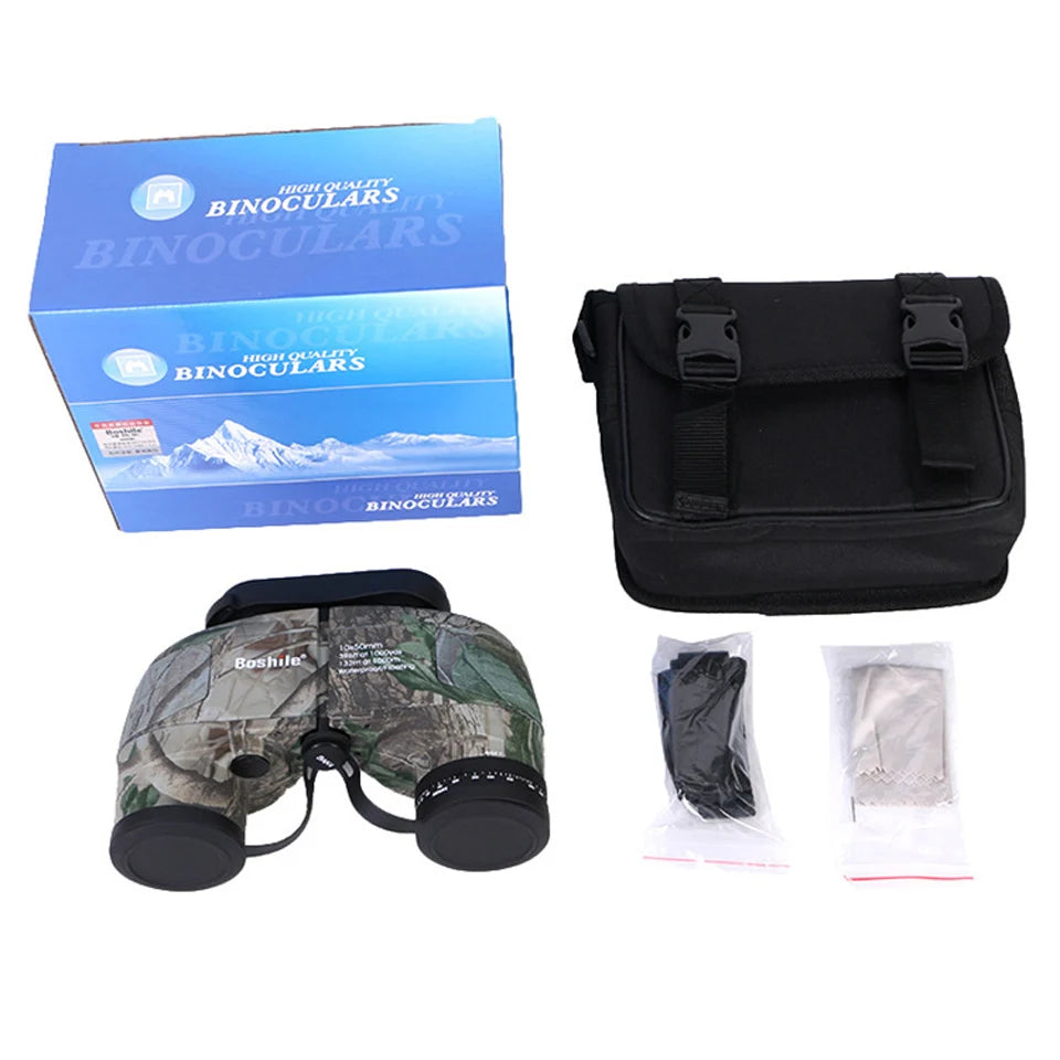 Boshile 10X50 Professional Telescope Military Marine Waterproof Binoculars Night Vision HD BAK4 Rangefinder Distance For Hunting