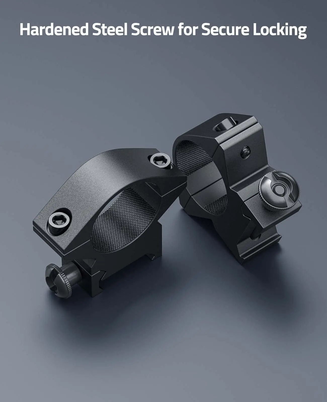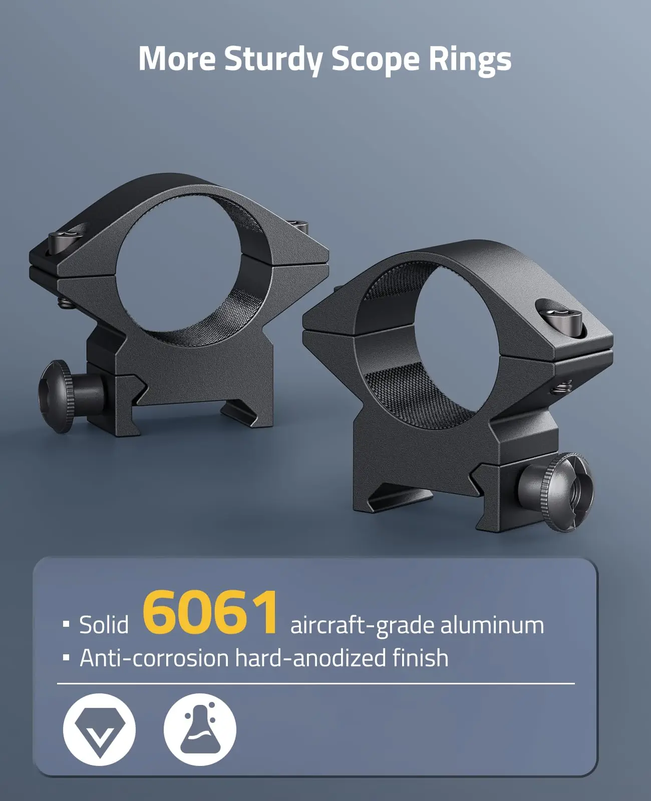 Lightweight Scope Mounts: Made of aircraft-grade 6061-T6 aluminum alloy with a black anodized finish, sturdy and lightweight