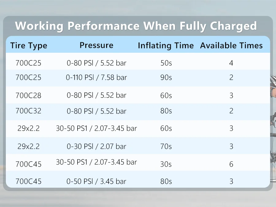 【Auto-Off Function】Our bicycle pump will auto-off when the target pressure is reached.