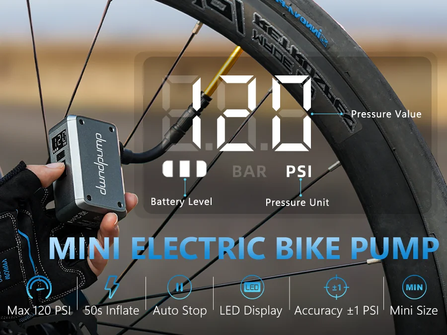 dwndpump DP5 PRO Electric Mini Bike Pump 120PSI Max with 420mAh Rechargeable Battery LED Display Smart Bicycle Tier Inflator