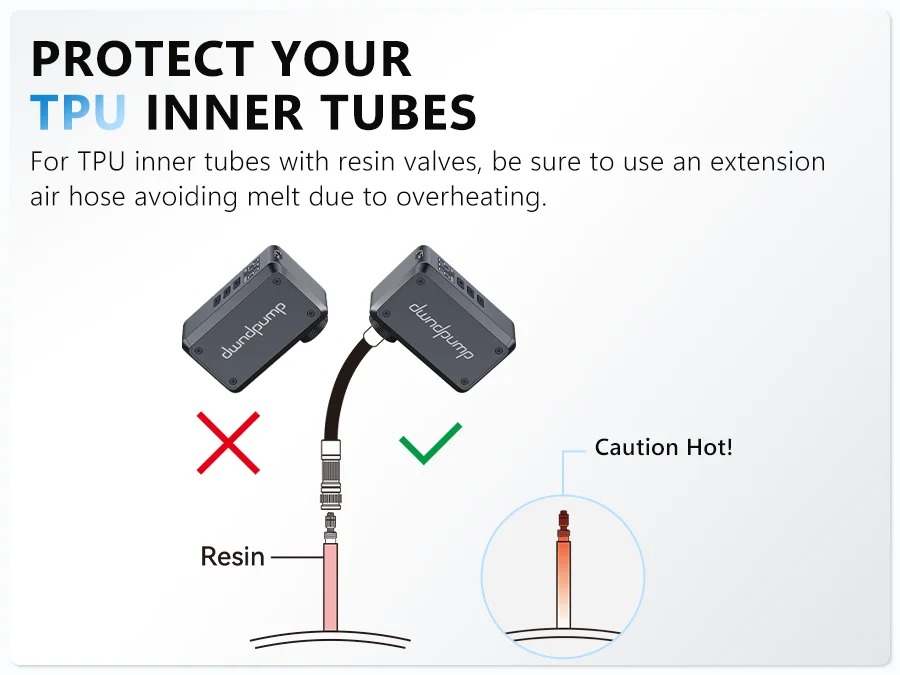 【More Notes】For TPU inner tubes with resin valves, be sure to connect them with an extension air hose, or the valves may melt due to overheating