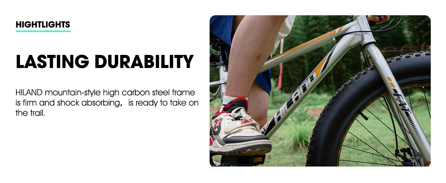 Hiland 20 Inch Kids' Bicycles Fat Tire Mountain Bike for Age 5 + Years, Shimano 7-Speed, Dual-Disc Brake,Kids BeachBicycle