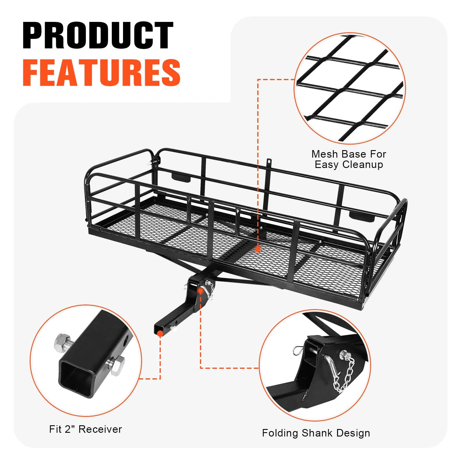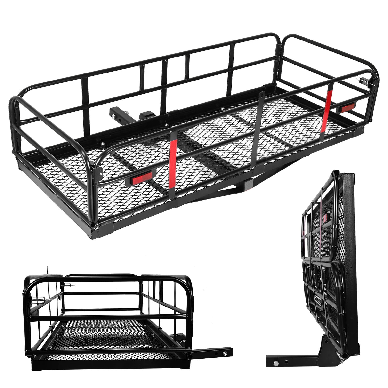 Hitch Mount Basket Folding Cargo Rack Rear Luggage Basket 500 LBS Capacity with Hitch Stabilizer for SUV Pickup Truck Trailer