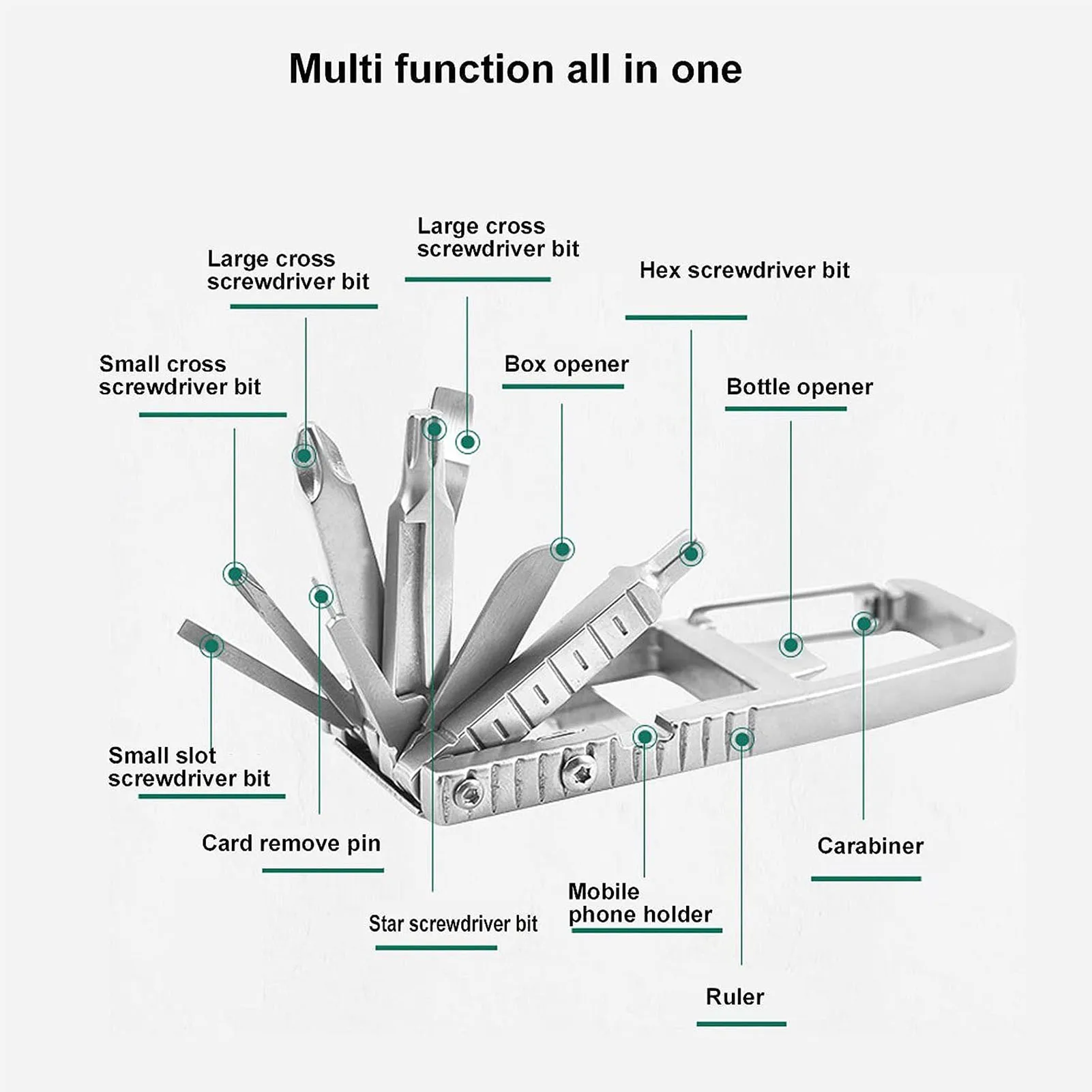Item Type: Multitool Screwdriver Bit Folding Multi ToolMaterial: Stainless Steel