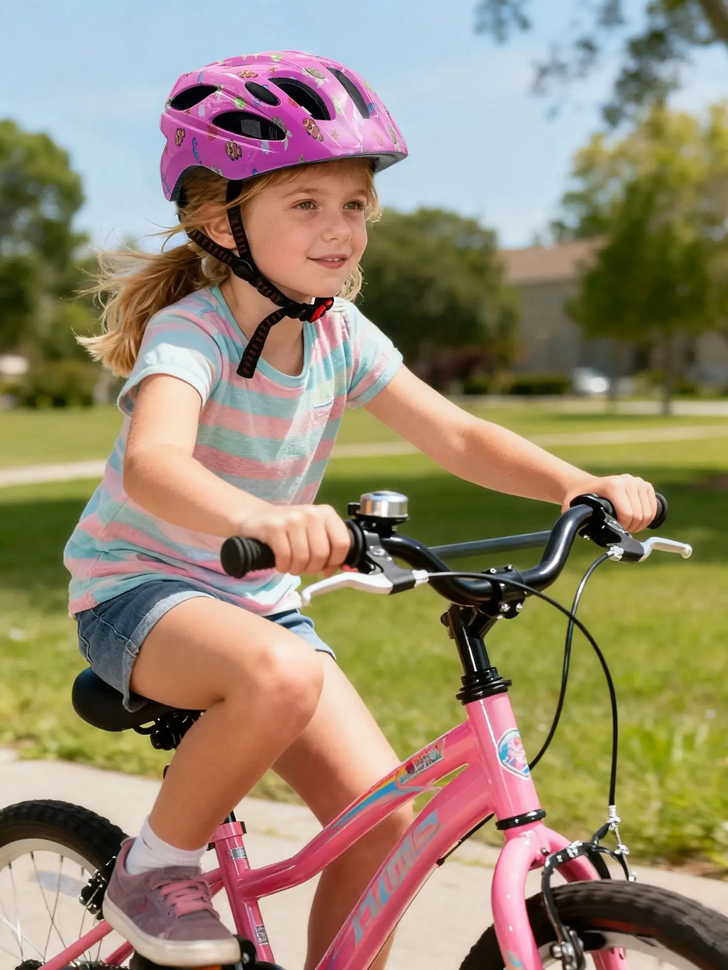 【Universal and size Adjustable】Rear easy-to-use adjustable knob (fit head circumference 53-58cm) make this helmet for kids 5-8 or youth bike helmet sizes. Padded chin strap adjusts easily – works for boys & girls bike helmet.