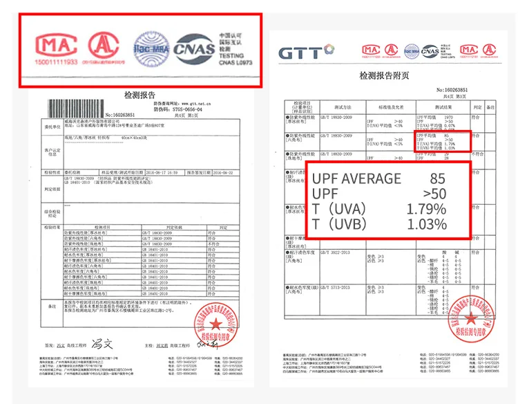 Sun UV Protection UPF50+ / Test report ↑