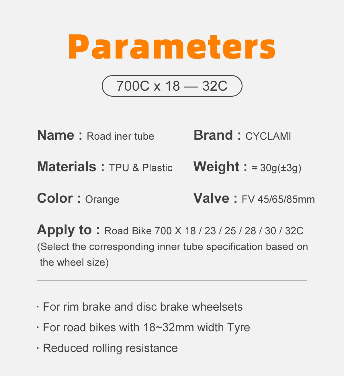 New Version CYCLAMI Ultralight TPU Bike Inner Tube 700c 18 23 25 28 30 32c Road Bicycle 45mm 65mm 85mm French Valve Cycling