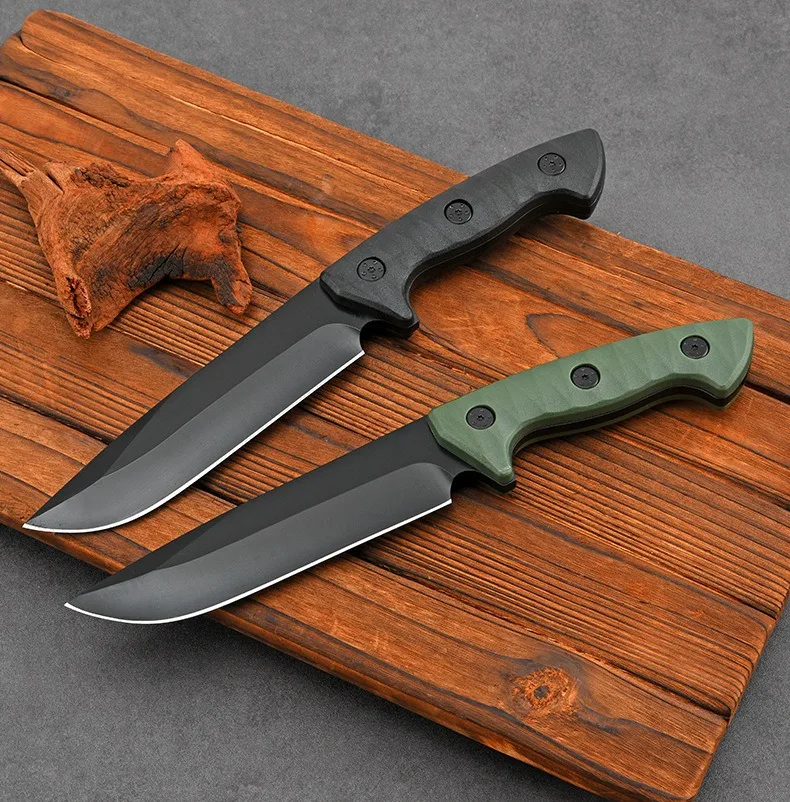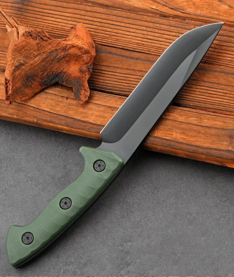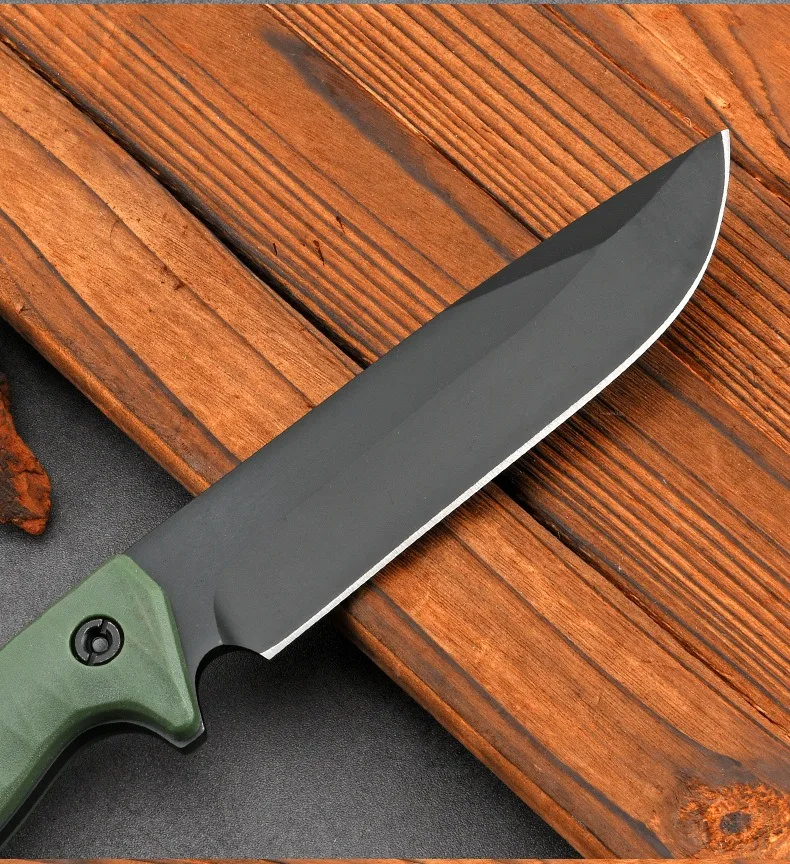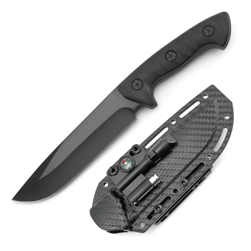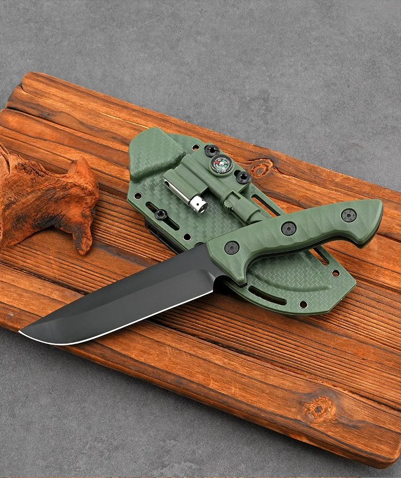 Outdoor straight knife, tactical K-sheath knife, camping survival knife with whistle, magnesium rod, compass, flashlight
