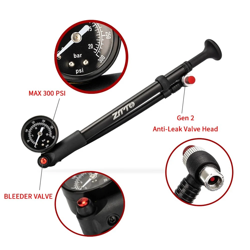 300PSI Bicycle Air Pump Schrader Presta Valve Bike Air Shock Absorber Bike Tire Air Pump for Mountain Bike Front/Rear Suspension