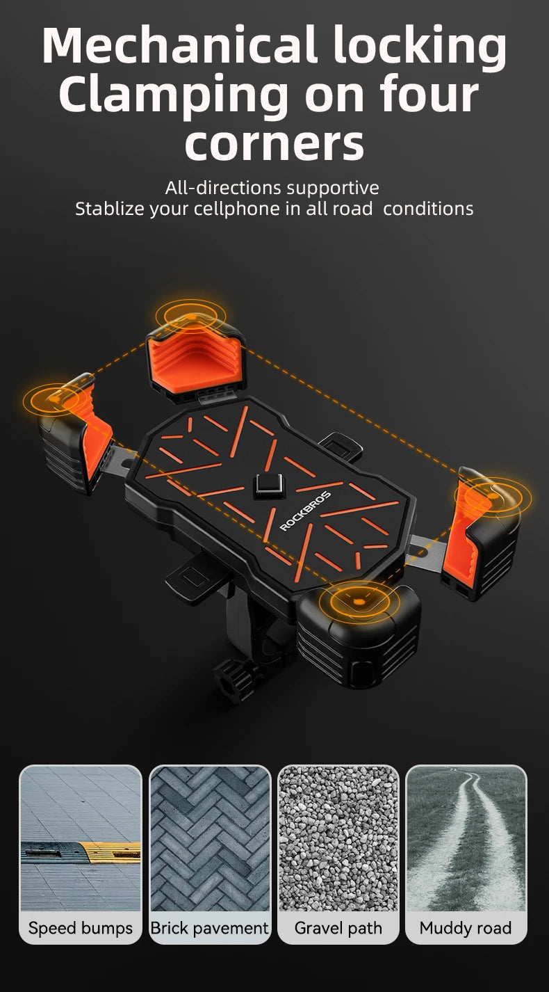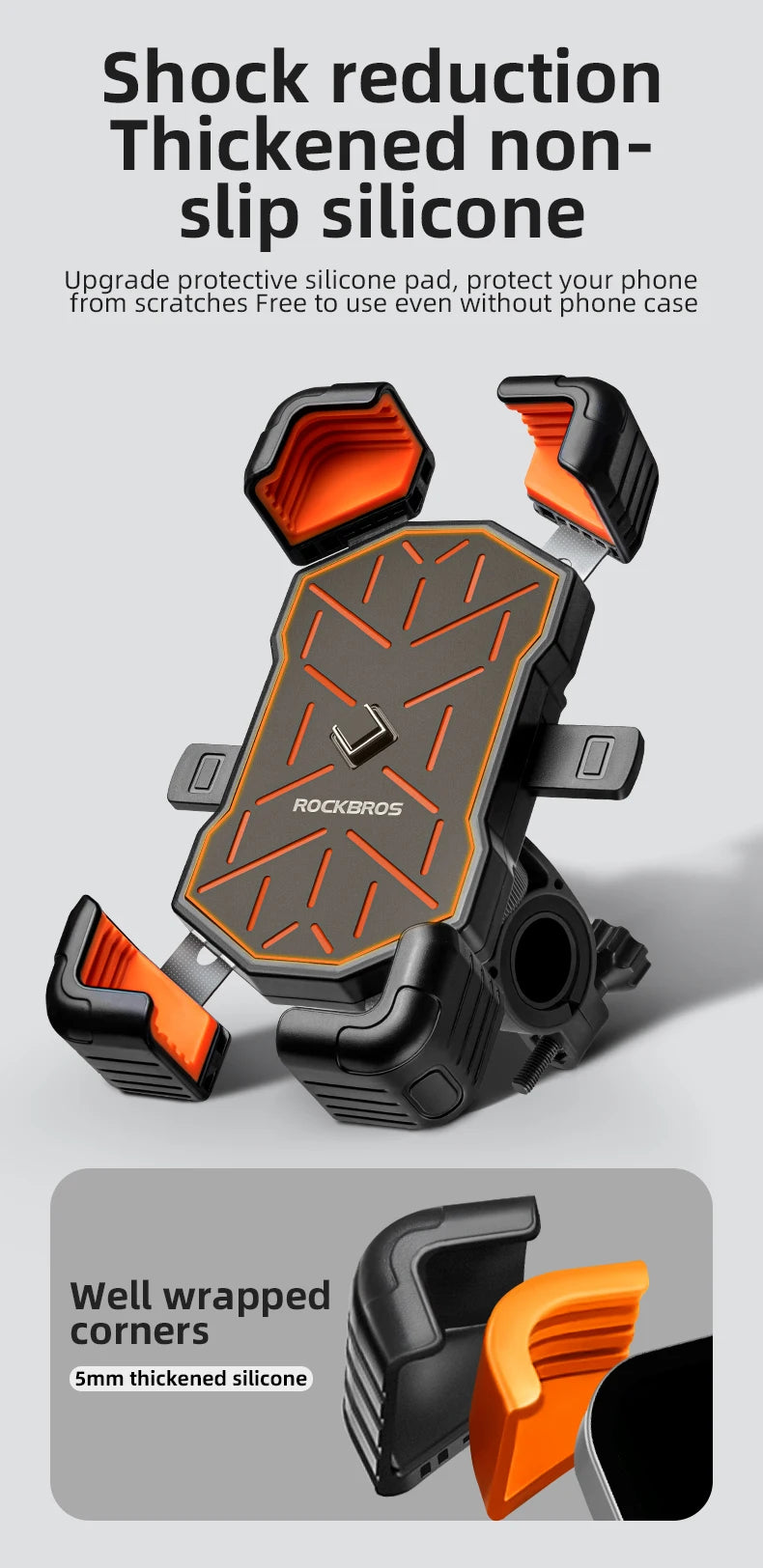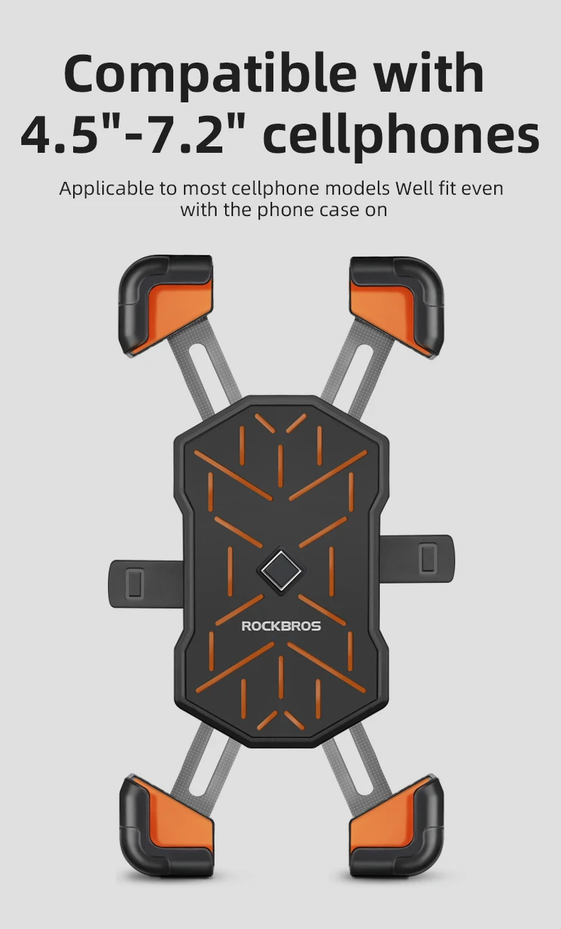 ROCKBROS Universal 360° Bike Phone Holder View Bicycle Phone Holder 4.5-7.2inch Mobile Phone Stand Shockproof Motorcycle Bracket