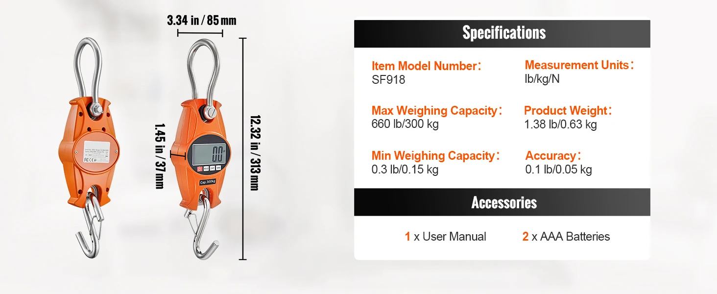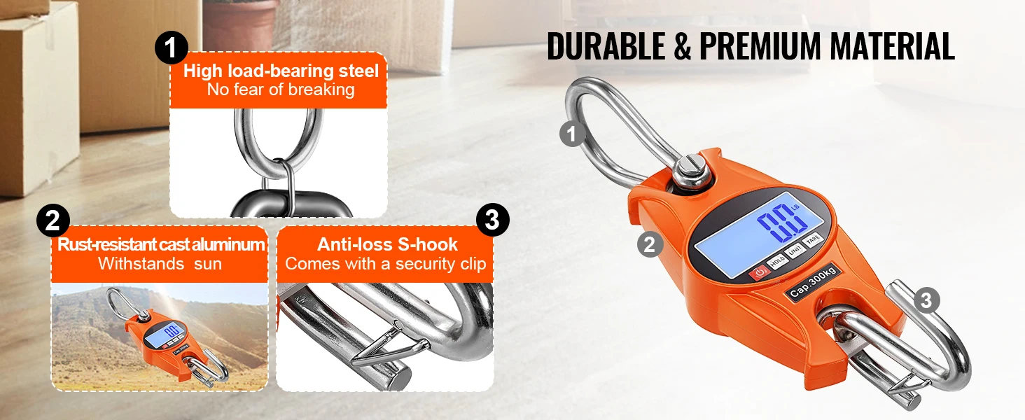 Precision That You Can Trust: Pop two eggs or a big lion on it, and our VEROR crane scale doesn't flinch! With a fab range between 0.3 lb (0.15 kg) and 660 lb (300 kg), you'll get a super close reading, just a teensy 0.1 lb error margin. Bet you'll love it more than the usual ones out there!