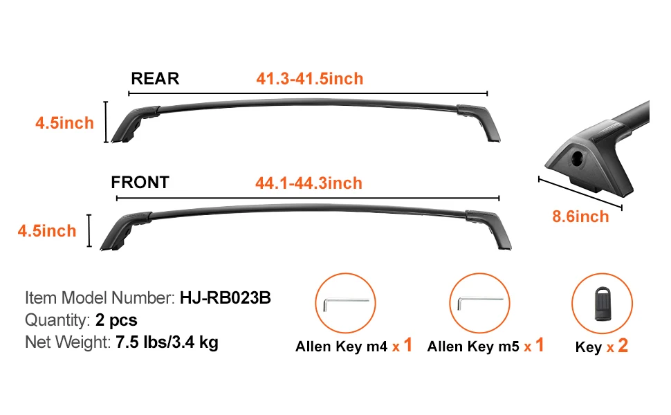 Lock-in Security: Our cross bars roof rack comes with an anti-theft lock system. Once installed, simply rotate the rack 90° to lock it in place and ensure steady and secure transportation. The mounting feet, crafted from durable PA nylon material, are built to withstand tough conditions and resist rusting.