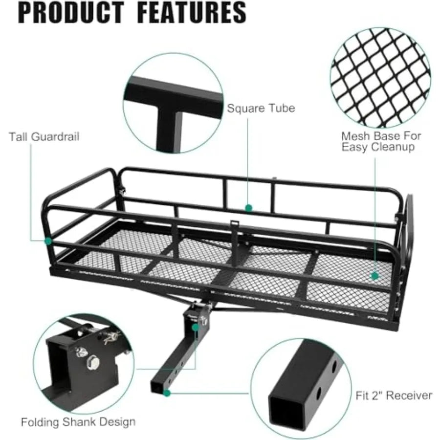 Trailer Hitch Cargo Rack 60 x 24 x 14 Inch Folding Hitch Mount Cargo Carrier with High Side Rails for RV Truck SUV Van 500 lbs.
