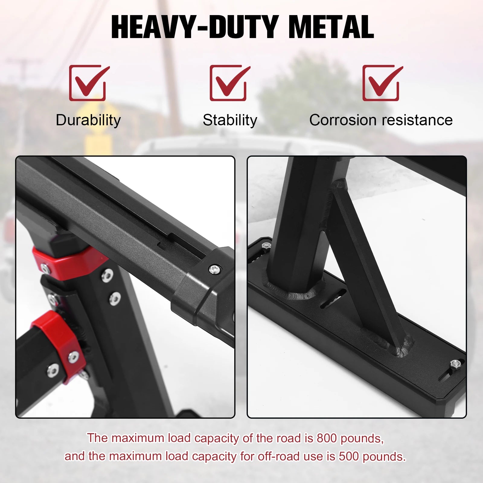 1.Wide Compatibility: This heavy duty fruck bed rack features a universal design, making it suitable for full-size pickups for Gladiator, for Toyota Tacoma, for Ford F-150 F-250 F-350, for Toyota Tundra, for Ford Ranger, for Chevrolet Colorado,for Honda Ridgeline, for GMC Canyon, for Nissan Frontier, for Ram 1500 2500 3500, and more.