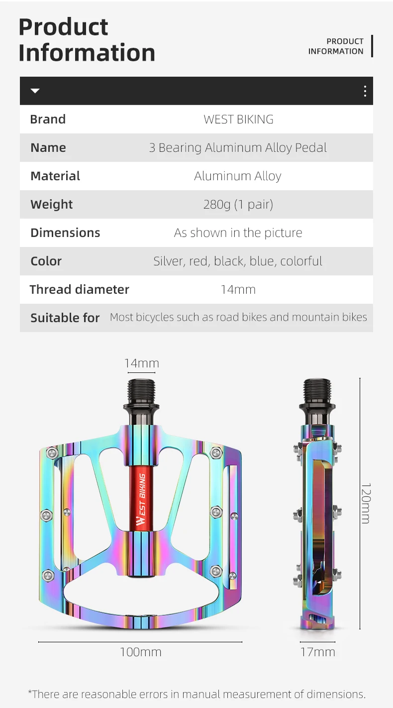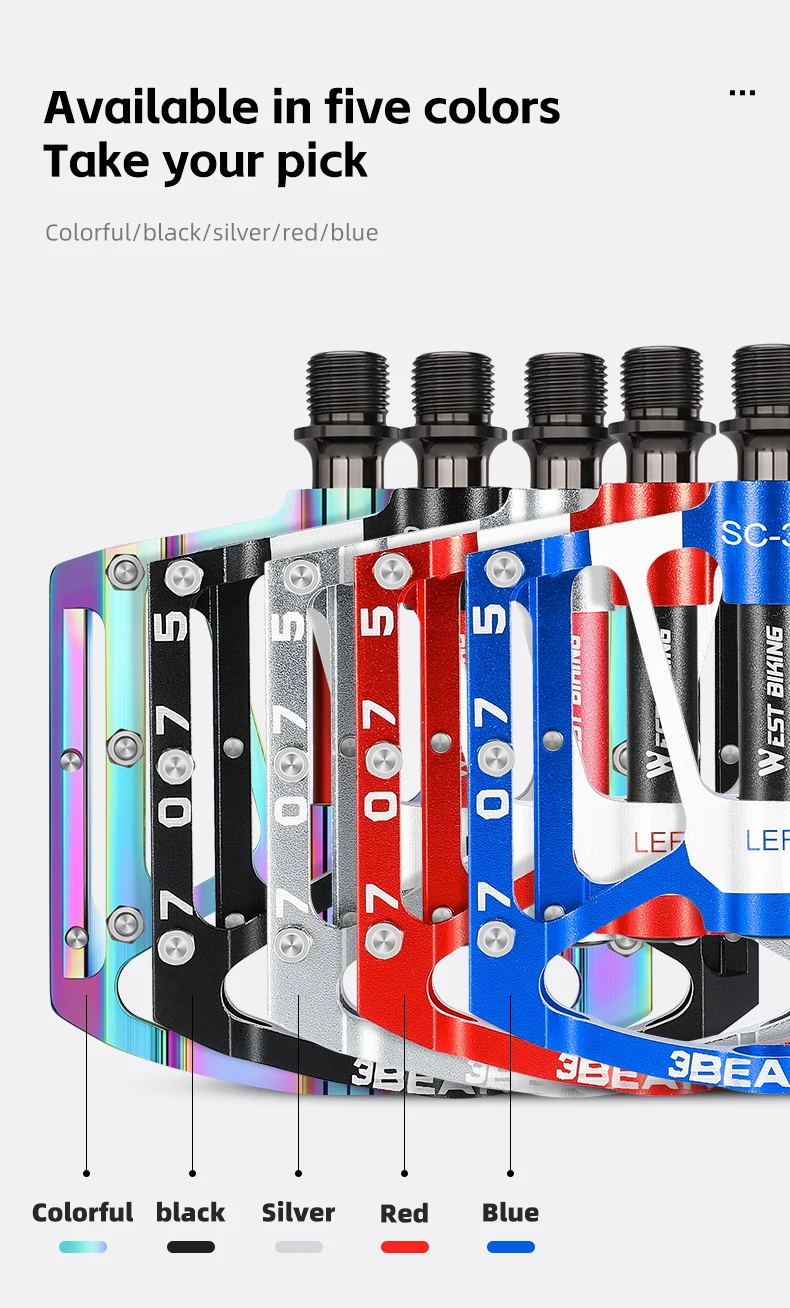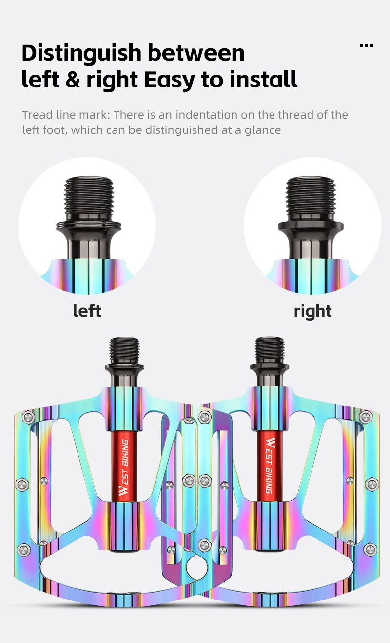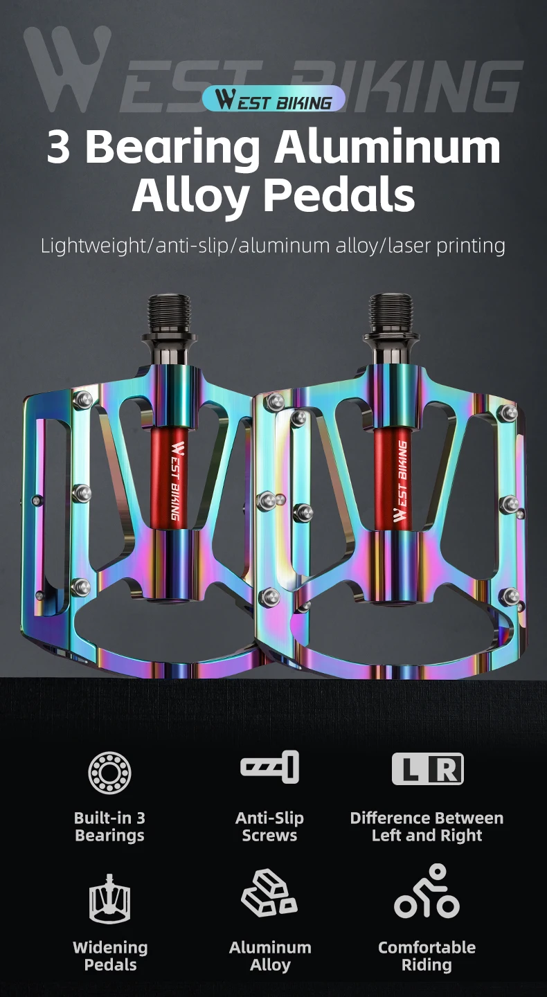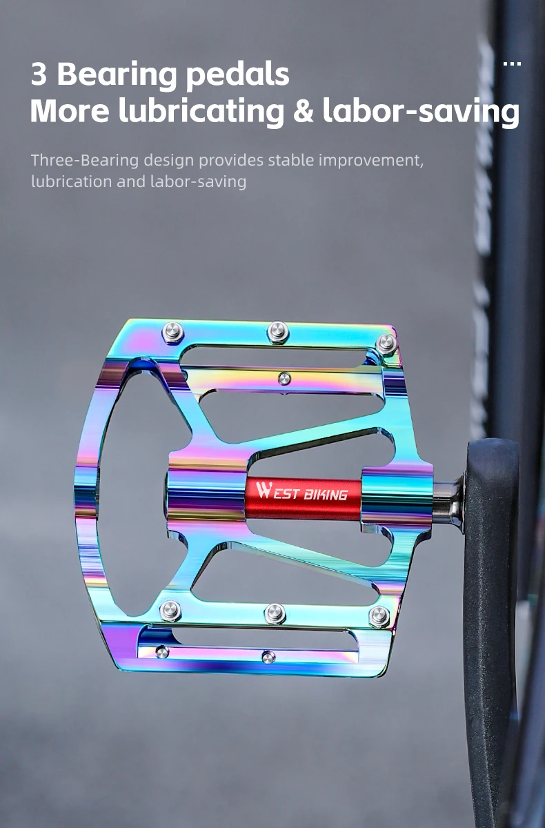 WEST BIKING Bicycle Pedal Three Bearing Aluminum Alloy Pedal Mountain Bike Road Bike Pedal Color Bike Accessories
