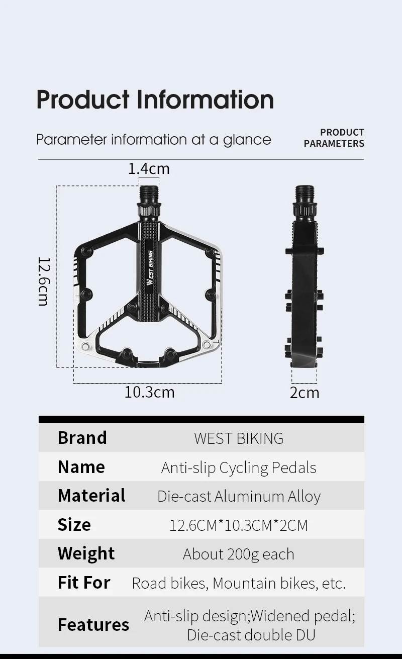 WEST BIKING Bicycle Pedals Sealed DU Bearing Nonslip Pedal Mountain Road Bike Cycling Alloy MTB Pedal Bicycle Accessories