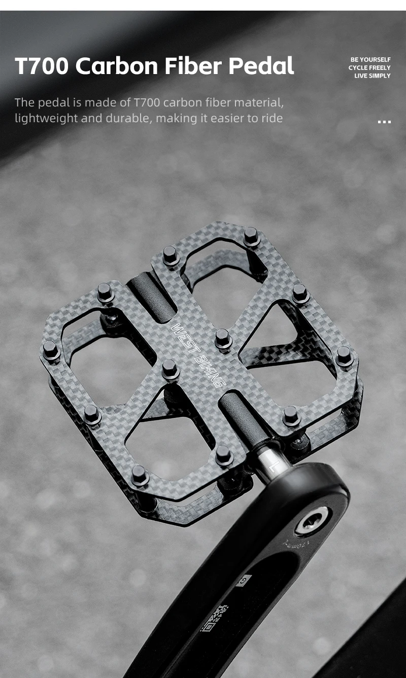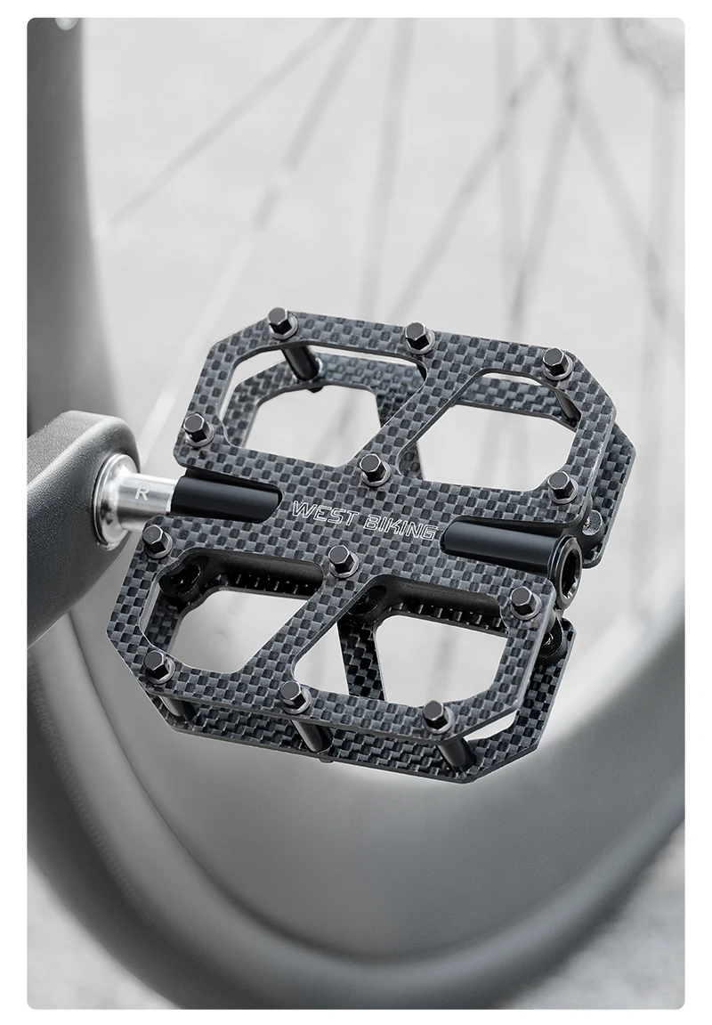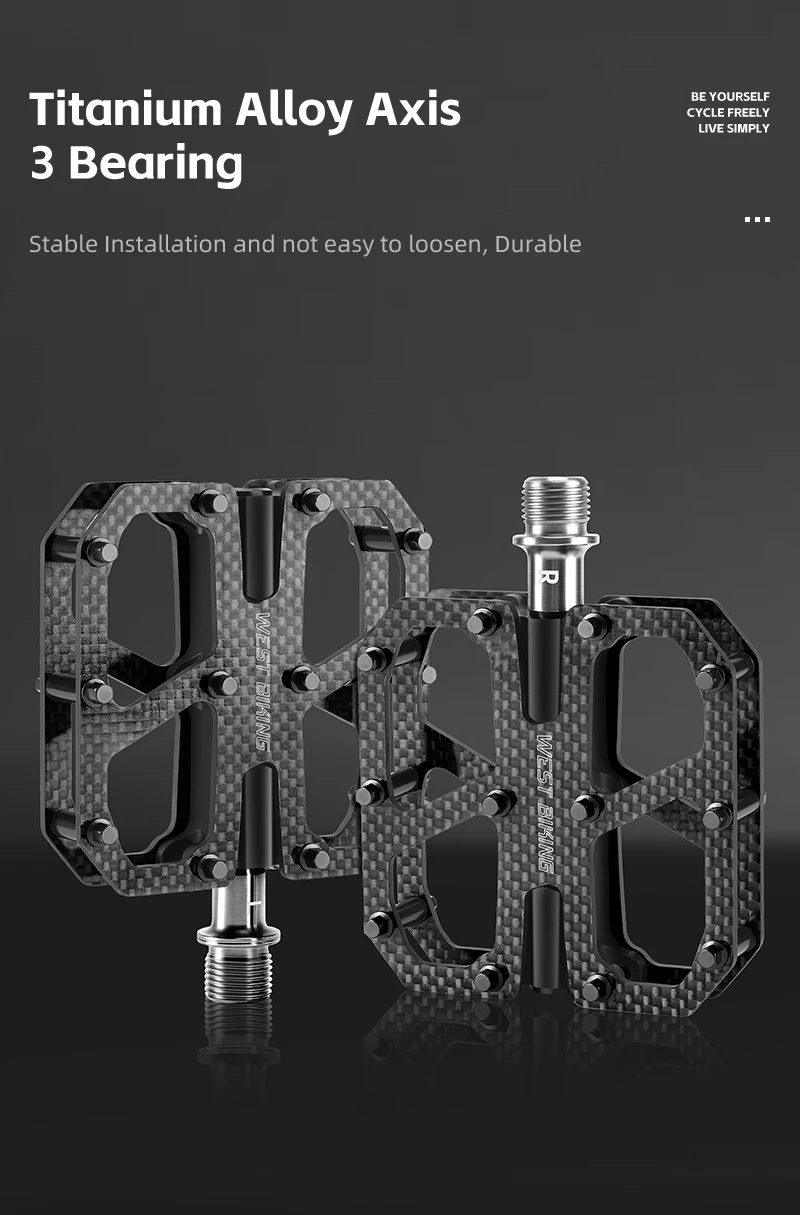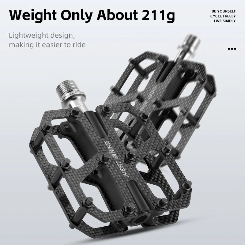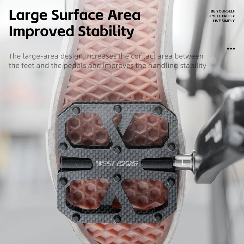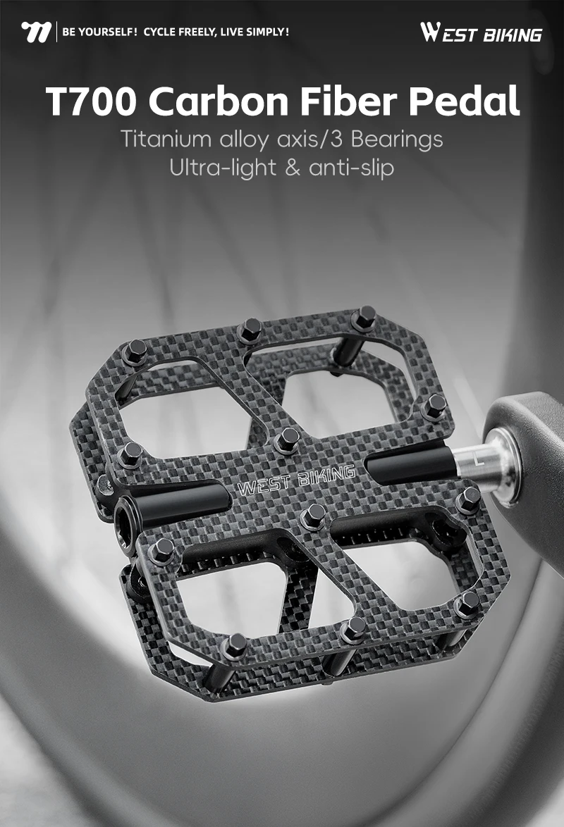 WEST BIKING T700 Carbon Fiber Bike Pedals 3 Bearing Cycling Pedals Titanium Alloy Anti-Slip MTB Road Bicycle Pedal Accessories