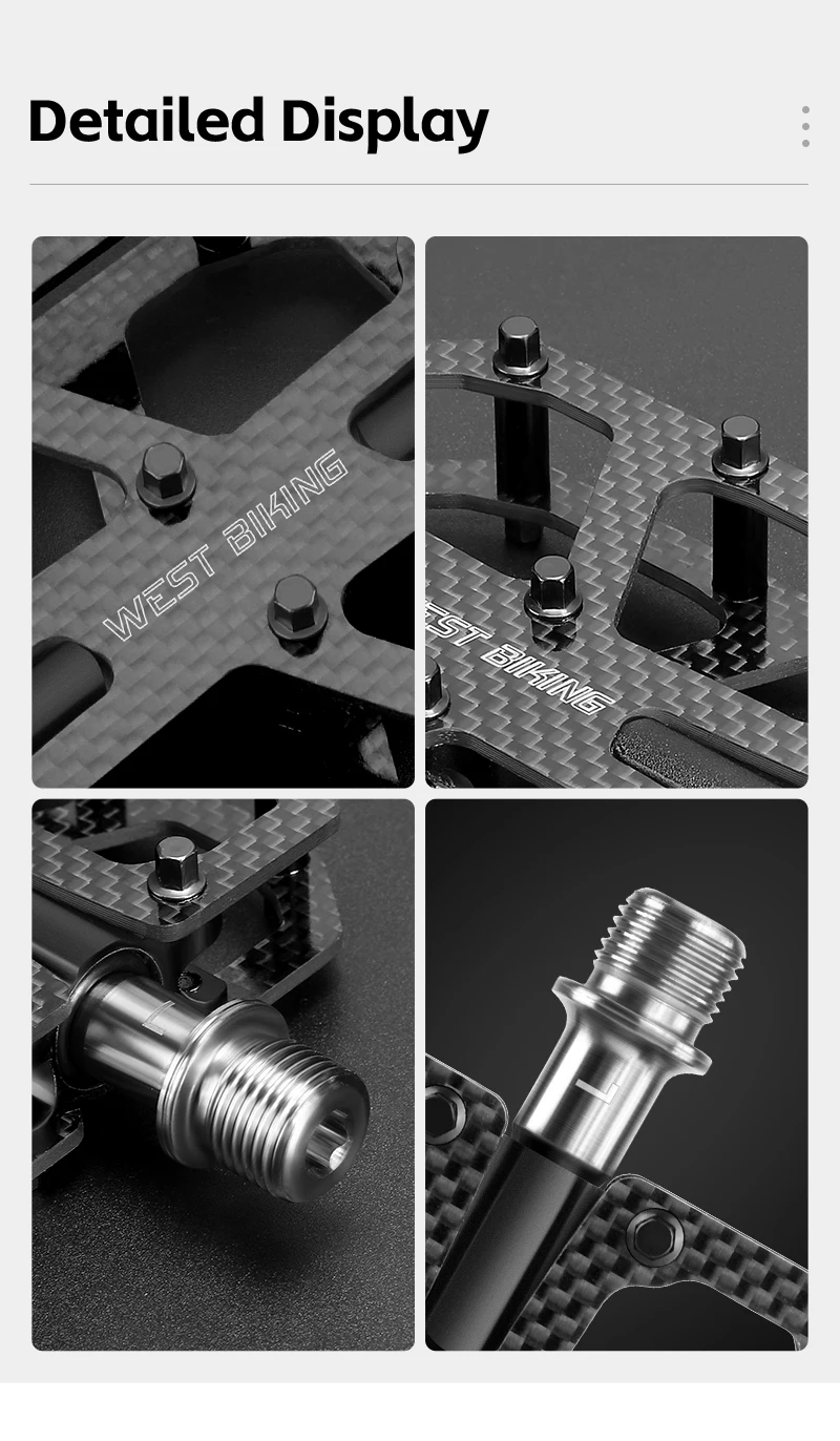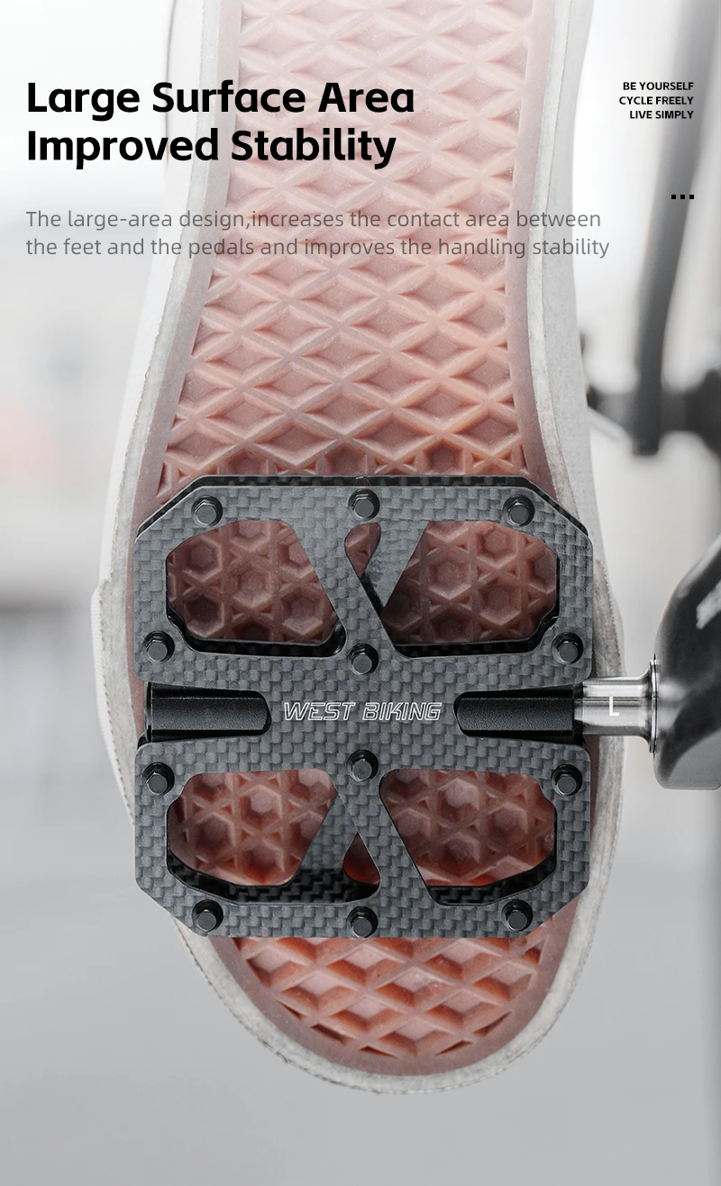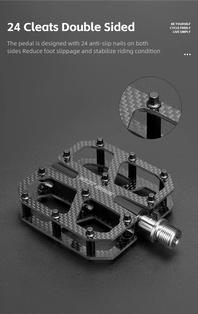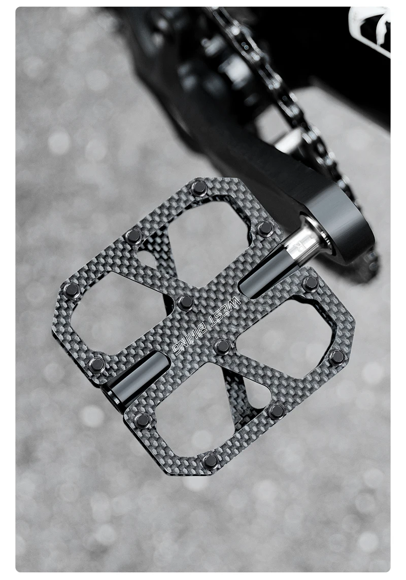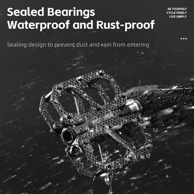 WEST BIKING T700 Carbon Fiber Bike Pedals 3 Bearing Cycling Pedals Titanium Alloy Anti-Slip MTB Road Bicycle Pedal Accessories