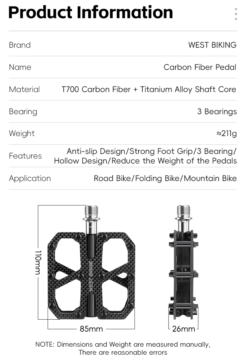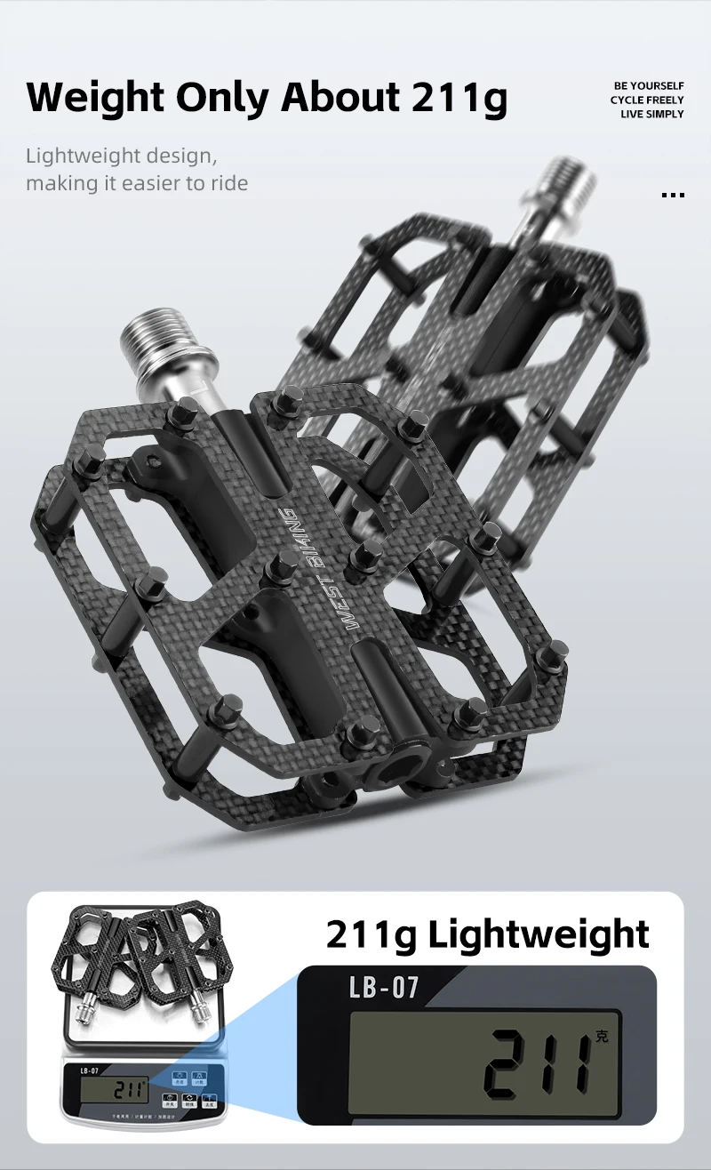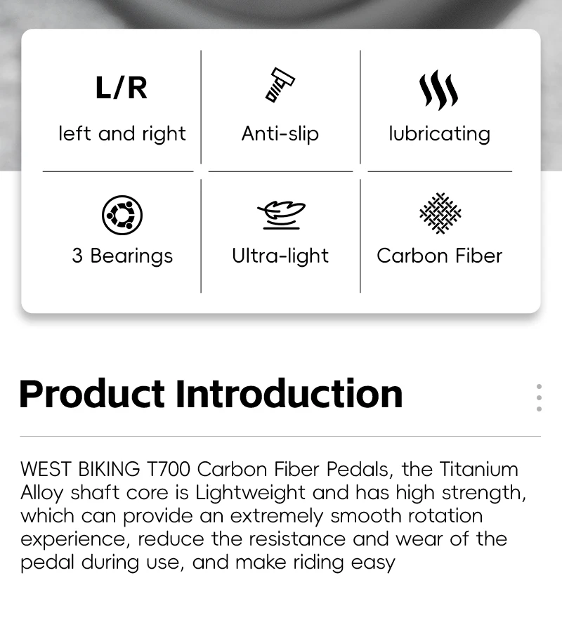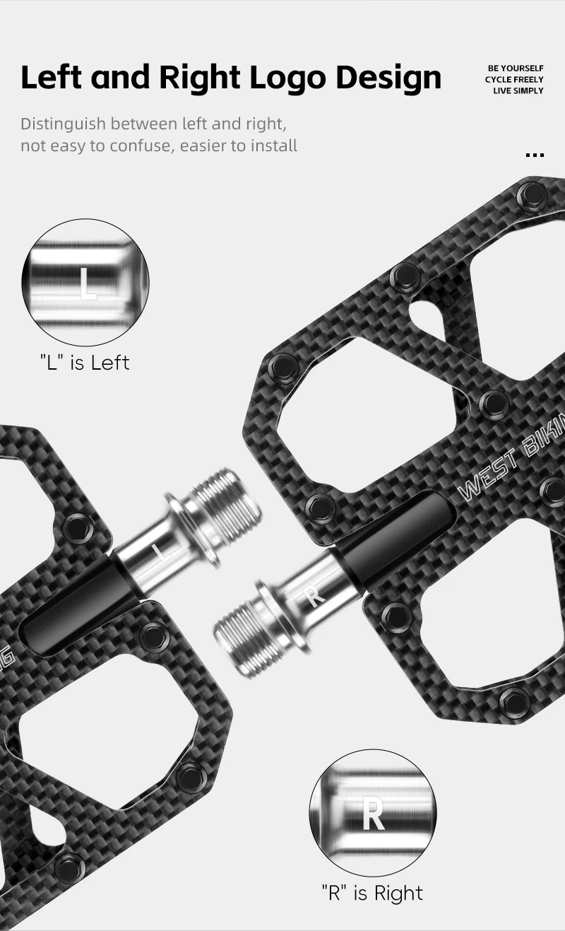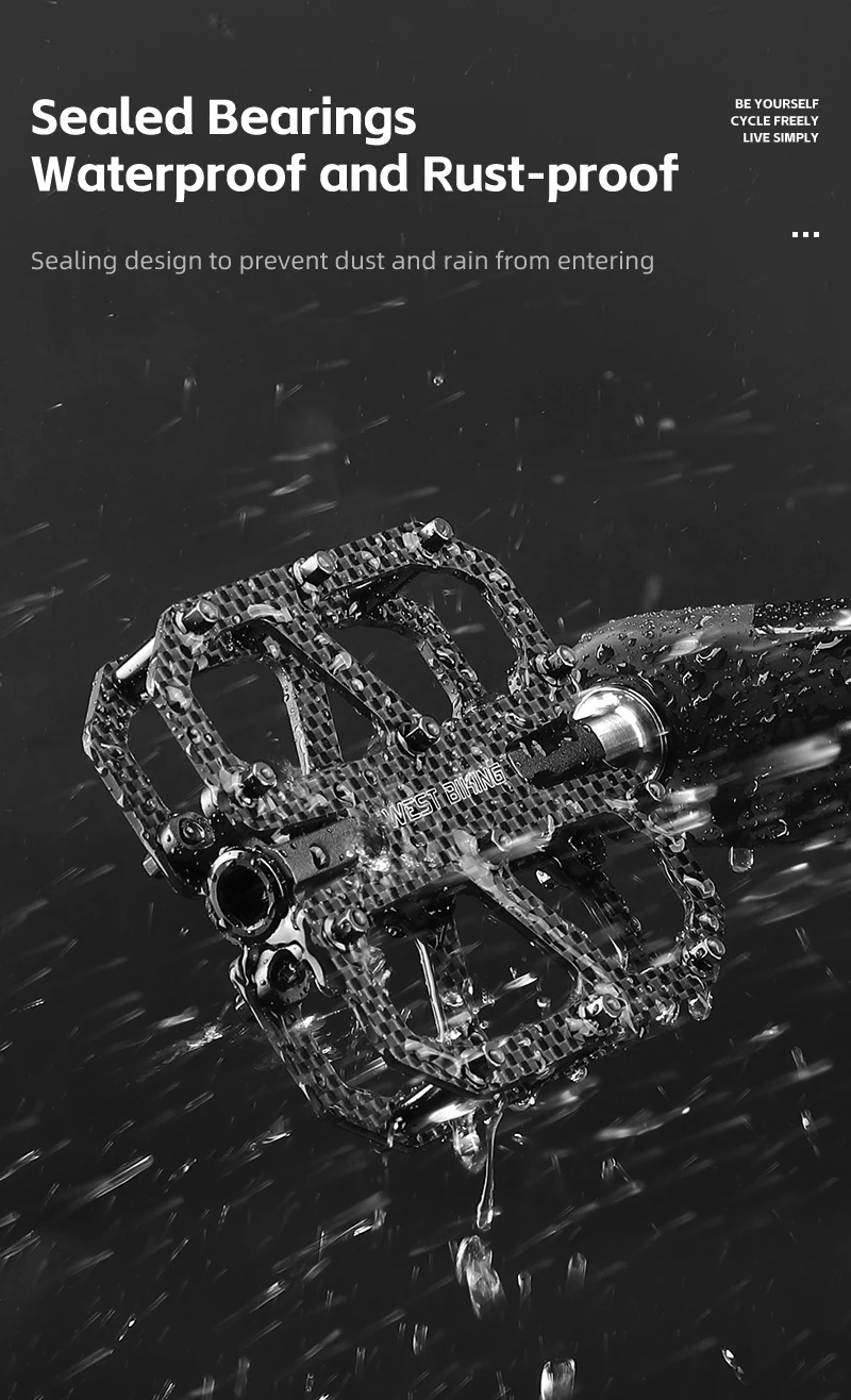 WEST BIKING T700 Carbon Fiber Bike Pedals 3 Bearing Cycling Pedals Titanium Alloy Anti-Slip MTB Road Bicycle Pedal Accessories